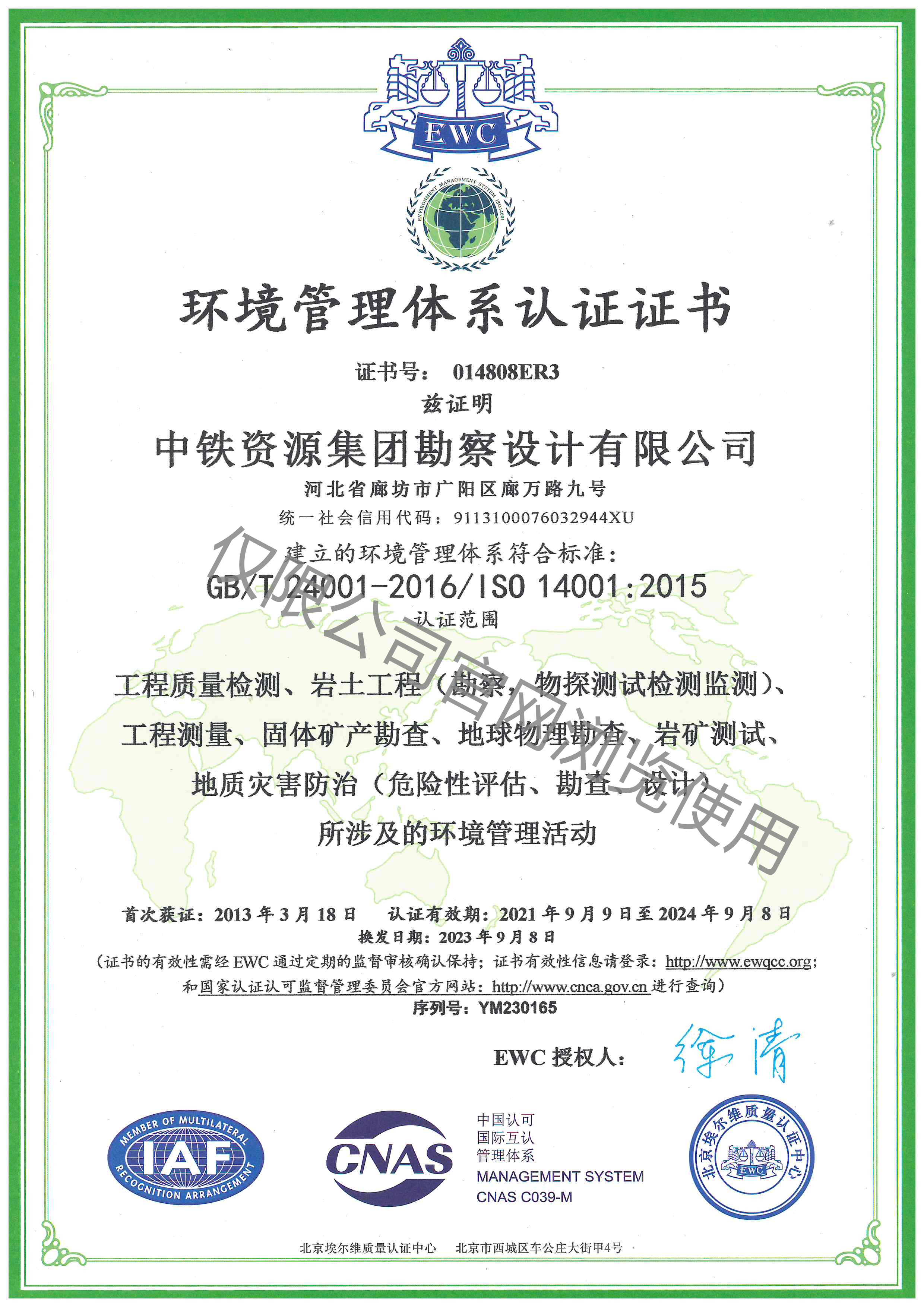 環(huán)境管理體系認(rèn)證證書(shū)